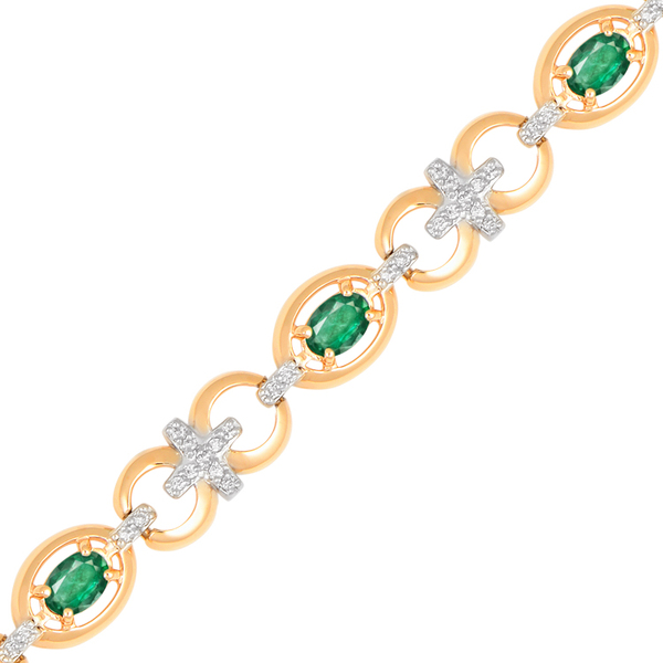 Браслет, сочетающий сияние золота, блеск фианитов и насыщенный зелёный оттенок изумрудов, выполнен в утончённом классическом ключе. Изумруды, заключены в аккуратные обрамления, а соединительные звенья украшены крестовидной инкрустацией фианитами. Геометрия элементов и чередование оттенков придают украшению выразительность и ритм. Этот браслет станет элегантным акцентом как в торжественном образе, так и в сочетании с лаконичными тканями — шёлком, костюмной шерстью или вечерним бархатом.