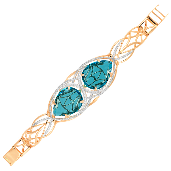 Браслет с вставками ситал лондон — словно морская история, рассказанная через свет и форму. Два главных камня огранки «груша» сияют глубиной полупрозрачного синего, сквозь который проглядывают волнообразные линии тонкого металла — как отблески дна сквозь воду. Камни обрамлены дорожками из фианитов, мягко подчёркивающих их форму и создающих игру света. Свободные участки браслета — это изящные волны золота, поддерживающие морской ритм украшения. Браслет звучит тихо и благородно, станет самой яркой частью образа на вашем мероприятии.