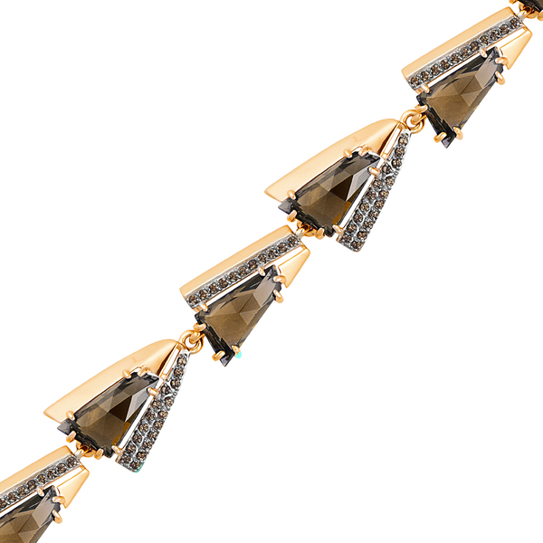 Браслет с раух-топазами и фианитами. Графичная композиция из раух-топазов редкой, архитектурной огранки. Камни выстроены в ритмичный ряд и подчёркнуты изящной дорожкой фианитов, точно подобранных в тон. Благородная симметрия и глубина оттенков создают образ, в котором строгость формы сочетается с тонкой игрой света.