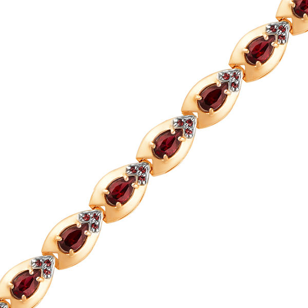 Браслет с камнями гранат в огранке «груша» завораживает своим насыщенным, глубоким винным цветом. Камень словно обволакивается гладким металлом, который подчеркивает природную красоту и уникальность каждой прожилки. Изделие излучает природное тепло и изящество, делая образ гармоничным и сбалансированным, а фианиты в тон камней делают изделие еще более ярким. Прекрасный выбор для тех, кто любит аксессуары с завораживающей энергетикой и стильным дизайном и не нуждается в сопровождении других украшений.