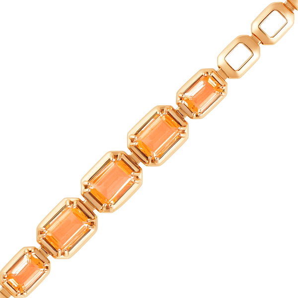 Браслет с синтетическим султанитом огранки «изумруд» очаровывает тёплым персиково-оранжевым оттенком. Чередующиеся вставки в гладком металлическом обрамлении создают ритмичный и цельный образ. Украшение гармонично сочетается с летними тканями — шёлком, льном, лёгким хлопком. Идеальный акцент к светлым и пастельным образам. Лёгкий, сияющий, запоминающийся.