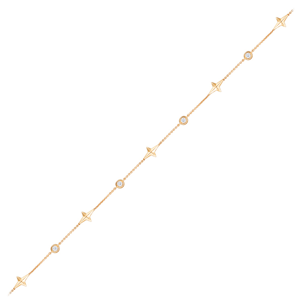 Изящный браслет на тонкой цепочке создаёт ощущение звёздного неба, рассыпанного по запястью. Чередующиеся фианиты и миниатюрные металлические звёздочки выглядят будто созвездия — ритмично, легко и невесомо. Украшение не перегружает образ, оставаясь элегантным акцентом, который гармонирует с другими браслетами или часами. Подходит как для повседневного образа, так и для особого случая — тихая роскошь в самом изящном её проявлении.