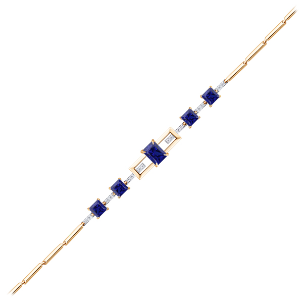 Геометричный браслет с ситал танзанитами глубокого сине-фиолетового цвета. Изысканное украшение с современным акцентом. Гладкие линии металла и четкие дорожки фианитов создают строгий, но элегантный силуэт, подчеркивающий благородство и изысканность изделия. Это украшение для тех, кто ценит современную классику.