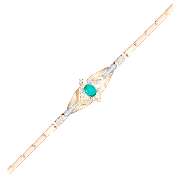 Изящный браслет с центральной вставкой ситал параиба огранки «овал» очаровывает чистотой линий и свежестью цвета. Сияющие фианиты, выложенные утончённым узором, подчёркивают форму и придают композиции лёгкость. Оттенок камня напоминает морскую гладь под утренним светом — мягкий, сияющий, небесно-бирюзовый. Украшение нежно дополняет платья из шёлка, сатина и струящихся тканей, делая образ особенно женственным и утончённым.