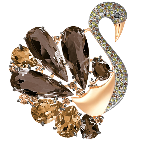 Брошь в форме лебедя — изысканное и женственное украшение, созданное почти полностью из раух-топазов. Камни мягко переливаются тёплым дымчатым светом, придавая броши особую глубину и характер. Металл используется минимально, чтобы подчеркнуть чистоту линий и сияние камней. Форма лебедя проработана до мелочей — грациозная, утончённая, с благородным силуэтом. Эта брошь добавит образу мягкого блеска и неповторимого шарма.