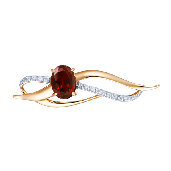 Минималистичная брошь с гранатом — украшение, в котором каждая линия звучит тонко и точно. Глубокий камень сияет тёплым винным оттенком, а волнообразная обсыпка белыми фианитами добавляет лёгкости и света. Металла минимум, зато максимум — в изяществе и балансе формы. Украшение, которое подчёркивает вкус без лишних слов. Идеально для тех, кто ценит тонкую эстетику и чистоту линий.