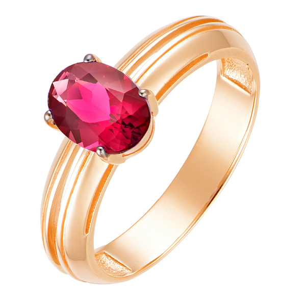 Современная интерпретация классики: золото и насыщенный, глубокий синтетический рубин в центре композиции. Камень закреплён в гладкой безрамочной оправе, что визуально увеличивает его и делает основным фокусом изделия. Двойная шинка кольца формирует лаконичный, но запоминающийся силуэт. Модель, которая подчёркивает уверенность и вкус, не перегружая образ.
