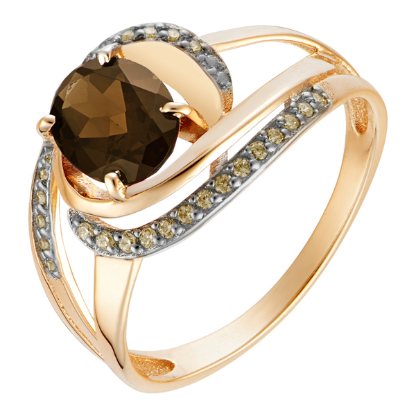 Роскошное золотое кольцо с цитрином — это драгоценный акцент, где главный камень ноньячно-янтарного оттенка, огранённый в изысканный овал, становится центром притяжения взглядов. Его глубокий, почти гипнотический блеск подчёркнут мерцающей россыпью фианитов, словно ореол из сверкающих капель росы. Тонкий ободок из красного золота обрамляет композицию, добавляя благородный контраст и делая сияние камня ещё более выразительным. Это украшение — для тех, кто ценит утончённую эстетику, гармонию форм и игру света в единственном, совершенном камне.