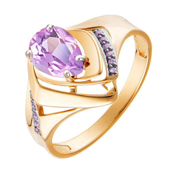 Кольцо с аметистом огранки «груша» — выразительное, архитектурное украшение с характером. Глубокий лавандовый оттенок подчеркнут дорожками фианитов в тон, а графичные детали из металла придают композиции динамику и объём. Идеально сочетается с строгими костюмами, лаконичными вечерними платьями и минималистичными образами в тёмной гамме.
