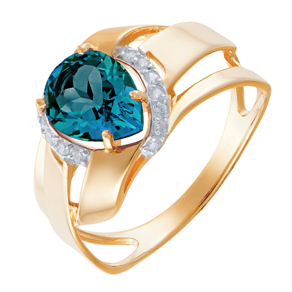 Глубокий и насыщенный лондон топаз — центральный акцент кольца, обрамлённый сиянием фианитов и поддержанный плавной формой оправы. Шинка словно «разделяется» на несколько линий, создавая визуальный ритм и подчёркивая динамику композиции. Контраст тёмного камня и тёплого золота делает это кольцо особенно выразительным на руке. Идеальный выбор для уверенных в себе женщин, ценящих утончённый драматизм.