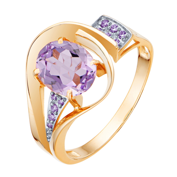 Кольцо с аметистом овальной огранки словно раскрытый бутон: две плавные линии металла формируют лёгкую, почти воздушную оправу, обнимающую камень, как лепестки — сердцевину цветка. Полупрозрачный аметист сияет изнутри, а в основании композиции — изящный лепесток с рассыпью фианитов в тон, добавляющий глубину и мягкое свечение. Украшение наполнено пластикой, светом и тонкой ювелирной поэзией.