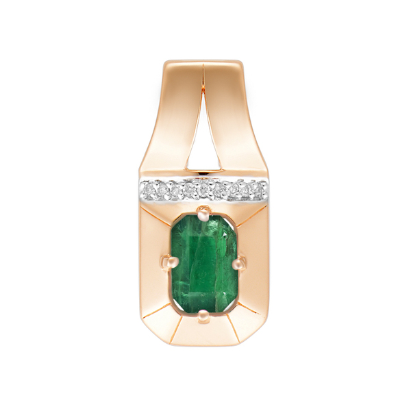 Золотая подвеска с изумрудом огранки «изумруд» — лаконичное, но запоминающееся украшение. Особую выразительность ей придаёт чёткая диагональная линия из сияющих фианитов, которая пересекает форму и добавляет динамики. Благодаря нестандартному силуэту подвеска выглядит современно и легко — для тех, кто ценит детали даже в самых простых вещах.