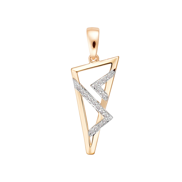 Современная подвеска из красного золота в форме вытянутого треугольника — стильный акцент для ярких образов. Внутри композиции зигзагообразная линия, инкрустированная сияющими фианитами, создаёт эффект молнии. Украшение притягивает внимание смелым дизайном и динамикой форм. Идеальный выбор для тех, кто ценит нестандартные решения и выразительную геометрию. Элегантно смотрится как с деловым, так и с вечерним нарядом.