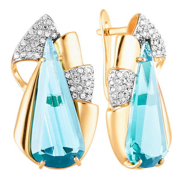 Скульптурные серьги с ситал топазами — воплощение архитектурной выразительности в ювелирной форме. Крупные камни строгой, почти графичной огранки приковывают взгляд своим стеклянным блеском и глубиной цвета. Объемная оправа из холодного металла обтекает форму, создавая ощущение монолитности. Белые фианиты добавляют световые акценты, подчеркивая линии и ритм композиции. Изделие выглядит мощно и дорого — как настоящее ювелирное заявление.