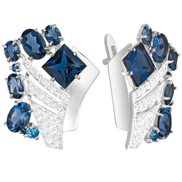 Серьги из белого золота, усыпанные глубокими синтетическими сапфирами и фианитами. Их смелый, крупный дизайн мгновенно притягивает взгляд холодным блеском благородного металла. Это не просто украшение — это яркий акцент, способный преобразить любой вечерний образ и заявить о вашем безупречном вкусе. Обладая сдержанной мощью, оно не требует сложных сочетаний, становясь самодостаточным центром вашего образа.